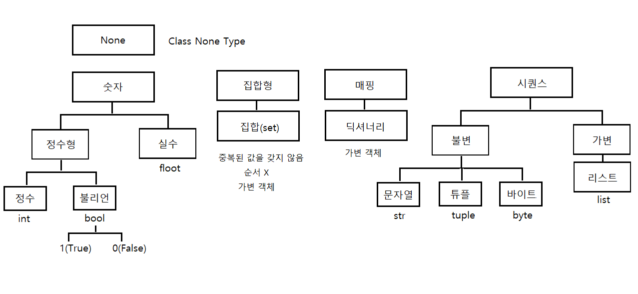 - 가변 객체 : 리스트, 딕셔너리, 집합(set)