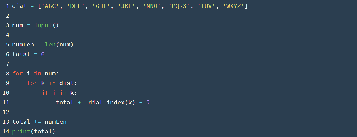 첫째 줄에 다이얼을 걸기 위해서 필요한 최소 시간을 출력한다.